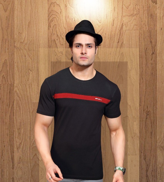 Men’s Black striped cotton round neck T-shirt