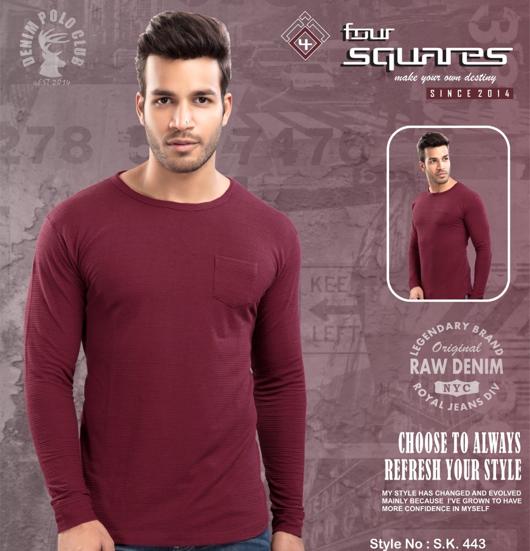 Men’s Maroon Lycra round neck and full sleeves T-shirt