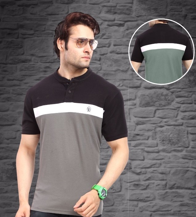 Men’s striped Henley’s neck cotton T shirt (FOUR SQUARE BRAND)